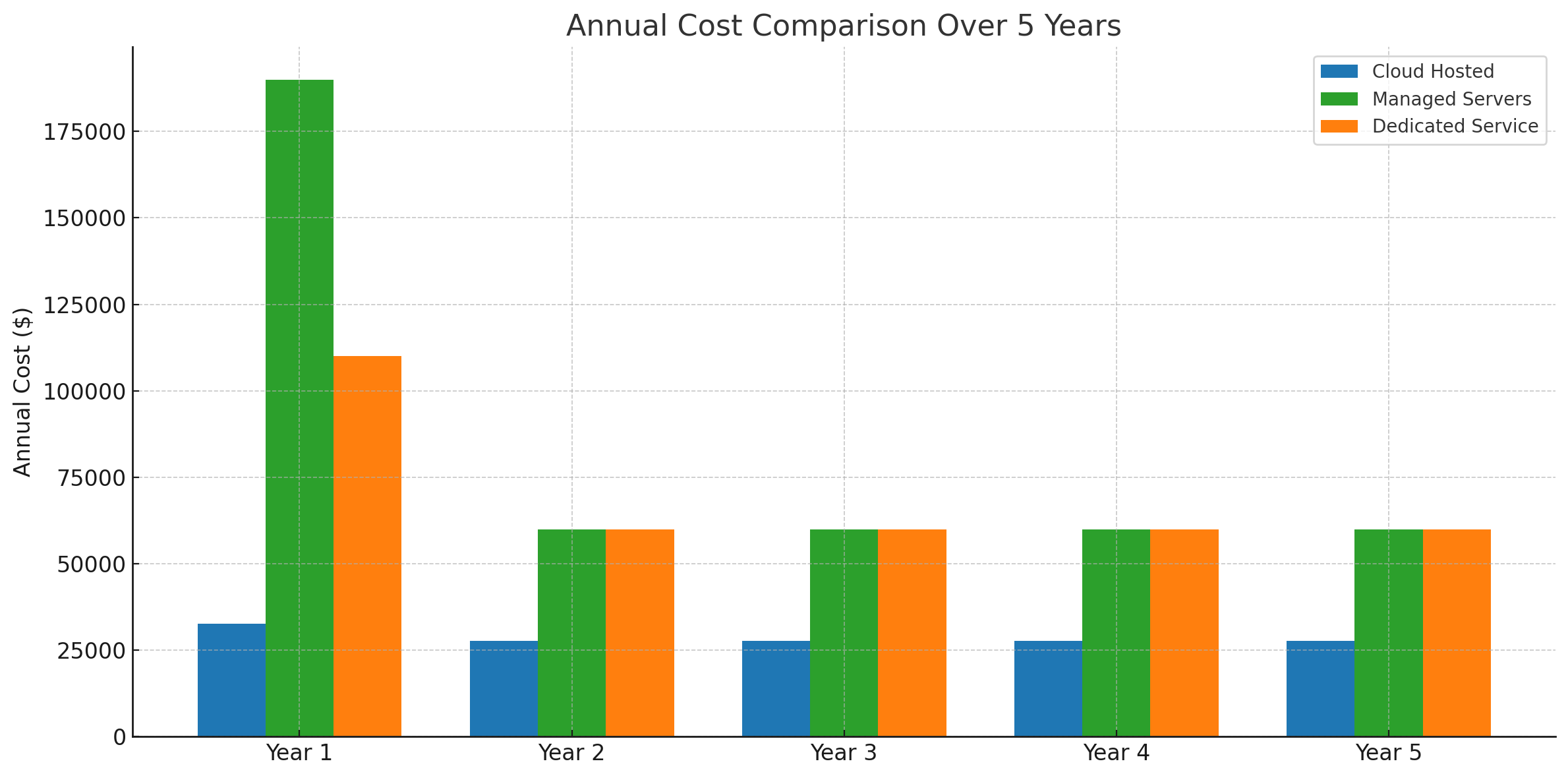 This approach ensures that your first-year costs reflect both deployment and capital investments, but over time the operating costs flatten and remain predictable. The result is a dedicated, sustainable infrastructure that pays for itself in reduced reliance on cloud rentals and offsets, while giving your team the confidence of full control and private ownership.